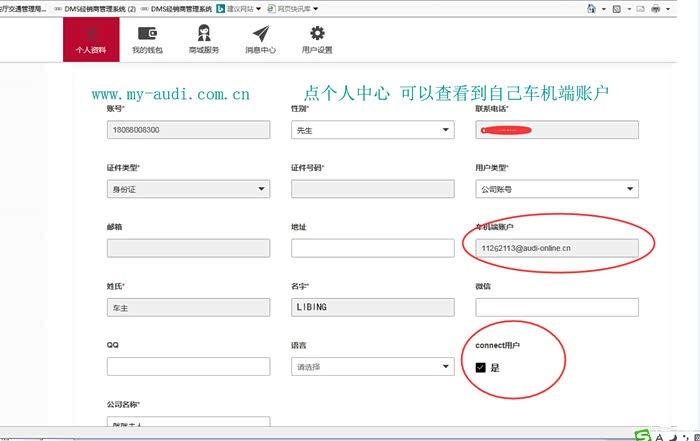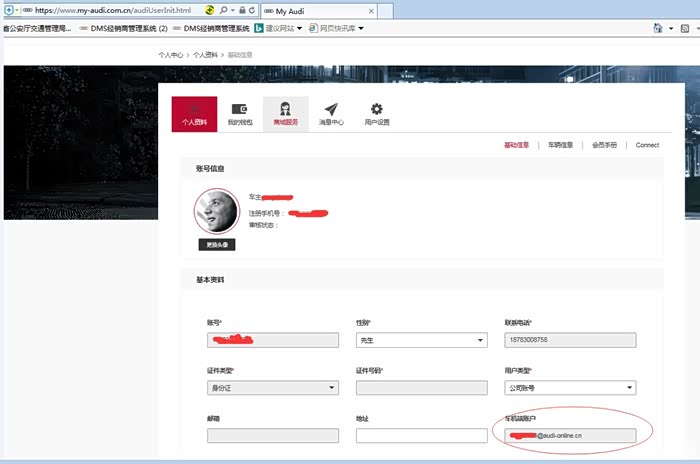 奥迪官网(可重置密码,进入后可查看车机端账号):http://www.my-audi.com.cn/