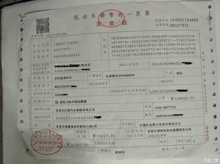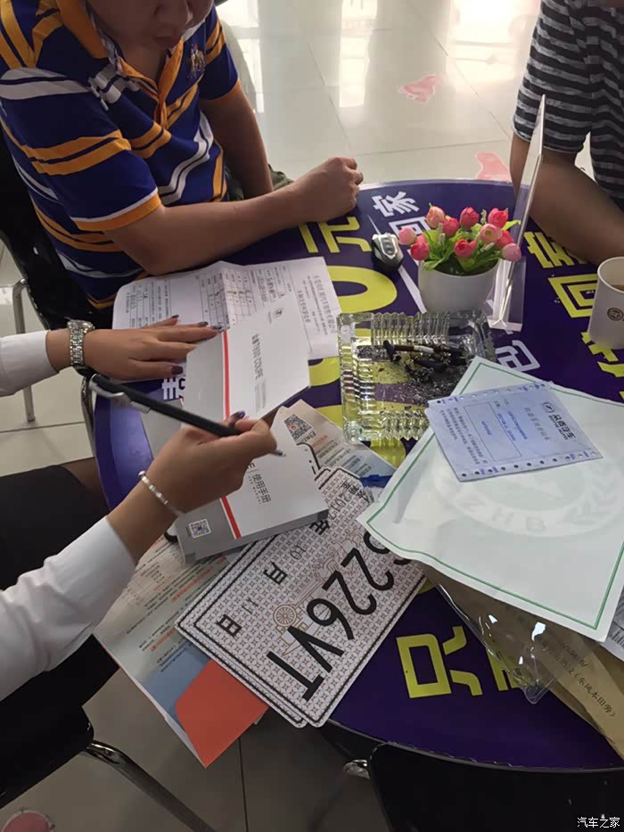 回家和家里人商量考虑了一段时间后,就去订车了。但是我要的配置和颜色刚好没现车,但他们说一周左右车就到了,当天付了定金结果意外的第三天就到车了,这让我挺欣喜的哈,然后隔天上午带着激动的心情去店里提车了,交了车款后验了验车没发现啥问题,就开始办手续了,提车过程还算挺顺利的,就是有点下雨,下午差不多两点手续才办好,