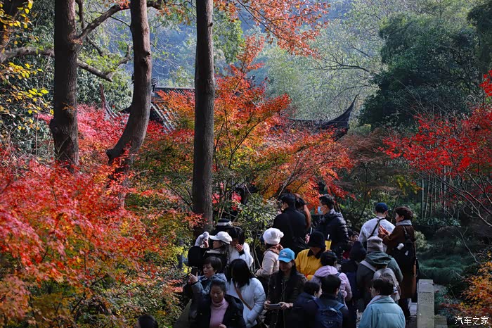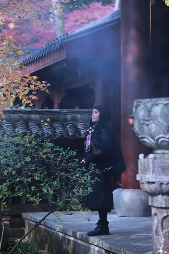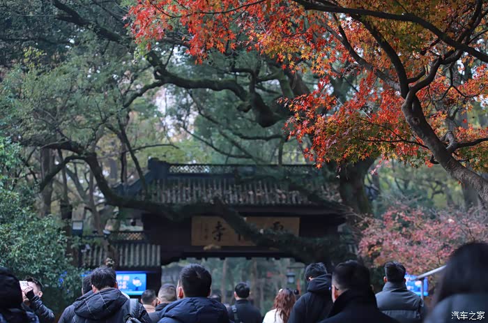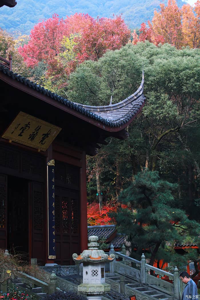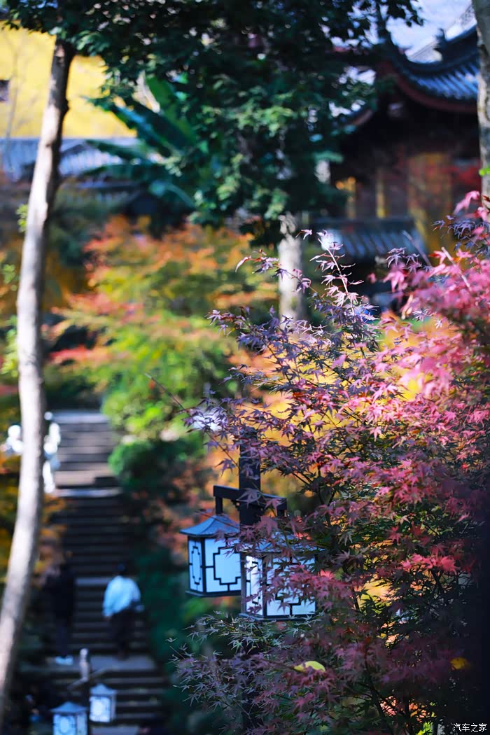 秋日进入寺庙赏枫礼佛的游客络绎不绝