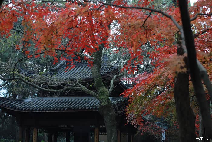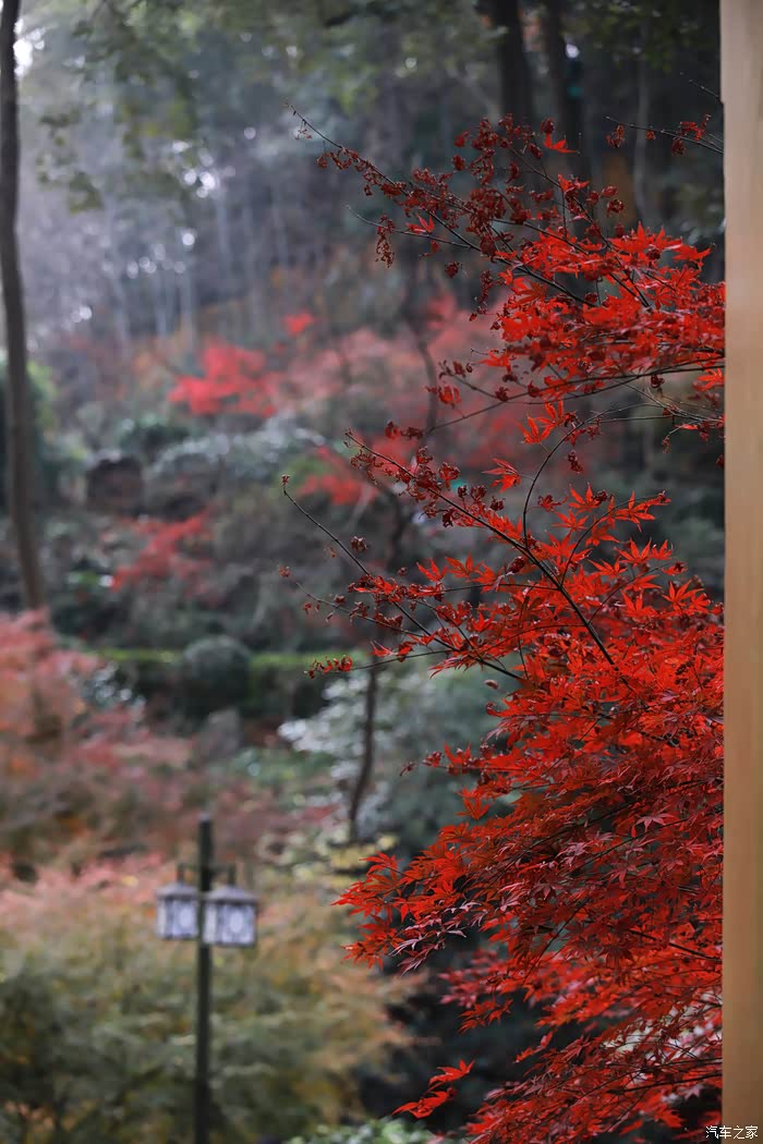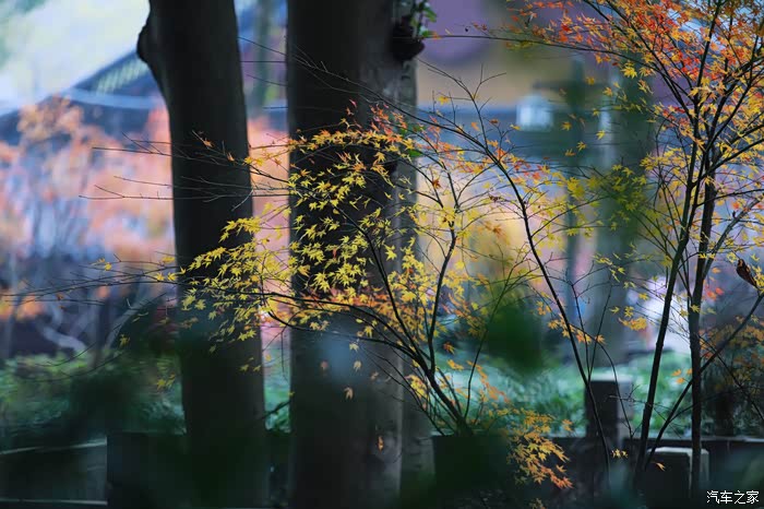 庭院中有数株红枫