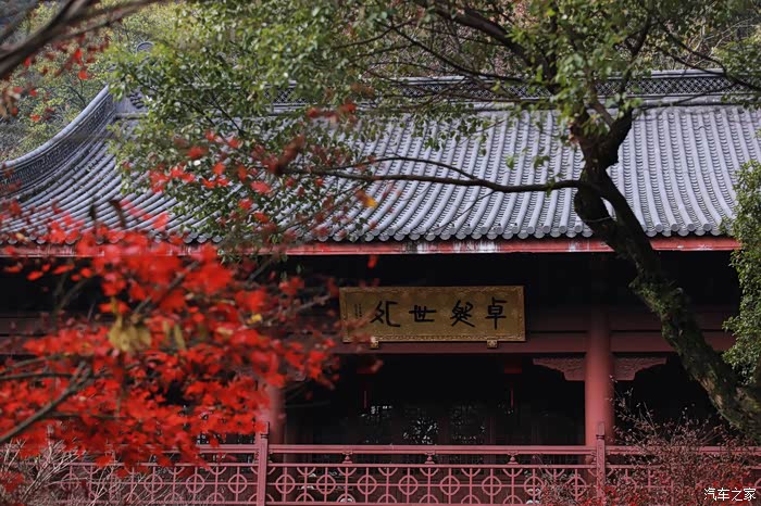 掩映在红叶中的迦唛鸣空阁