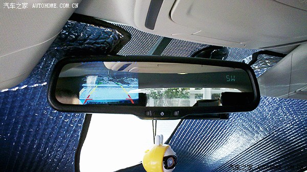 ↑后视镜总成,带倒车影像(左边会有个视频窗口,倒车时会显示);带自动防眩目(后车远光灯照射会自动变暗);另外还附有指南针功能……