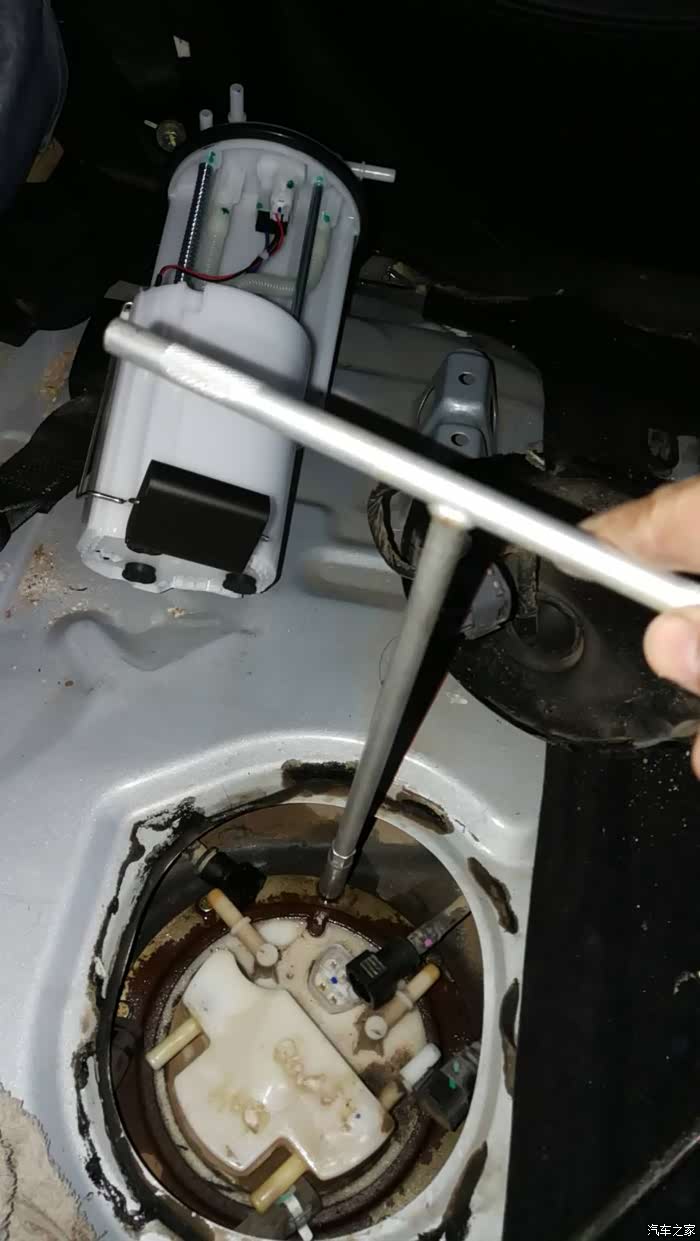 在油箱上面的铁圈,楼主这么大胆敢切割,油箱里面可是汽油,我更换过两次汽油泵马达