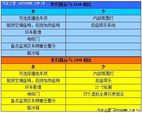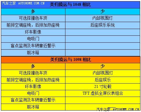 注:以上为范例参考,具体配置对比还应以美规车本车配置为准。
