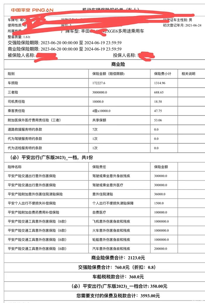 保险都是在5月18日那几天都在搞活动。全部的说法就是6月开始保费要上涨。要能买的赶紧先买了。我刚好是6月的保险,所以就买了,2750第三年。300W。我在4S店买的。价格一样的,还便宜了几十块钱,但是送了很多店里的活动,比如全车内饰精洗。这个到外面都得3-400了。