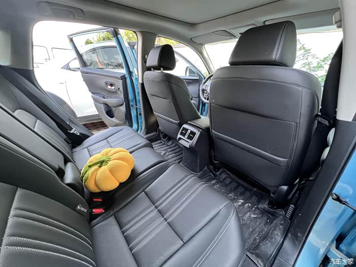 晒晒车内的大空间,虽然东风本田HR-V混动版属于紧凑型SUV,不过谁让人家格局设计的好呢,后排地板又基本纯平,三个成年人坐在后面也不会觉得多挤。座椅的填充物饱满且靠背角度很好,出来游玩的时候如果坐个两个多小时也不会觉得累。