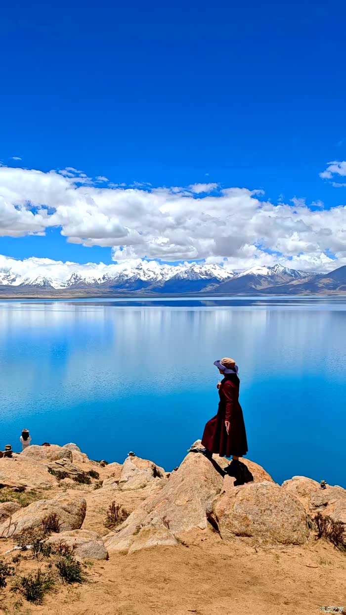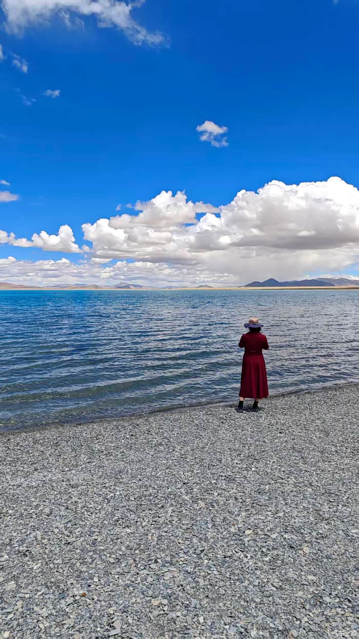 依依不舍离开北岸观景台回到219国道,路边的风景也很美。佩枯措南边也不错,南岸平坦有碎石滩,可以下到湖边。但比北边的雪山背景还是差了一点