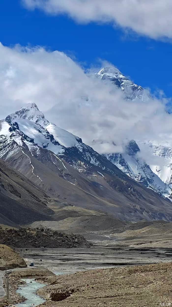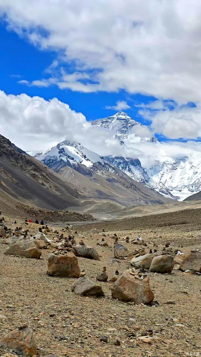 5/27第25天:多云,今天行程到珠峰大本营看珠峰。昨晚露营在北大门停车场,游客中心一开门就购票入内(珠峰只能当天购票)。先自驾50公里到换乘中心,再乘景交车到珠峰大本营。经过加乌拉山垭口时全是雾,什么都看不见。珠峰108拐只是弯多一点,路很好,开慢点,没有任何挑战。上午11点到达大本营,此时珠峰被云挡住。慢慢等,最后基本如愿