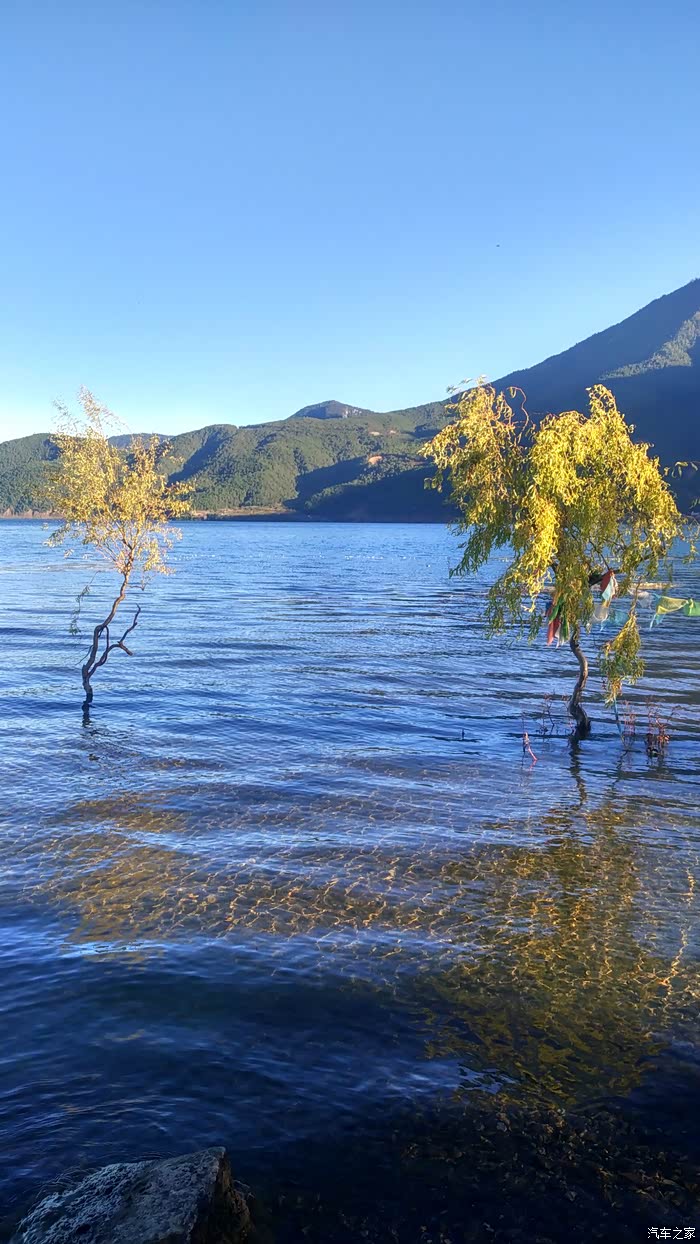 走阿海电站过去。老婆她们听说有十多公里弹坑路,路险。车上有小孩,放弃这条路!其实我很想走这条。第三条路走永胜县到宁蒗再到泸沽湖。走下面绕了一圈,过了永胜到宁蒗的省道还是不咋样。山路十八弯弯弯,还是弯。当天下午5点到泸沽湖,当看到泸沽湖的那一刻,路上的辛苦没有值得!入住下落水青瓦花楼客栈,客栈也不贵,干净卫生,硬件也好!晚上点了土鸡米线和烤鱼,老板亲自下厨。吃饭的遇见成都奔驰老乡,一男一女玩了泸沽湖准备去丽江!聊了下说祭神台有家好人小吃味道可以,三十元管饱!吃了饭三十元去看表演,感觉一般!