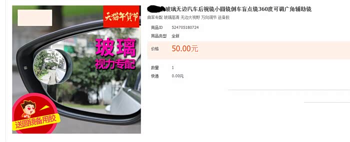 价格50?我5元买的。主要是方便停车时看后轮