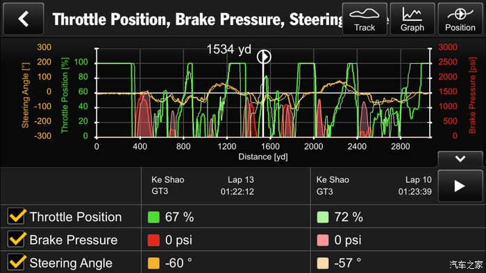 下面是价值1700+刀的选配,保时捷赛道app,目前只有GT系列能够选配,全世界只有TC和土耳其的GT系列不能选配这个。选配了这个之后,就能将手机和车通过wifi连接,通过车载的GPS自动记录你在赛道上的一举一动,内容之丰富我到现在都没有全部理解。以下几张图只是几个比较容易懂的数据。
