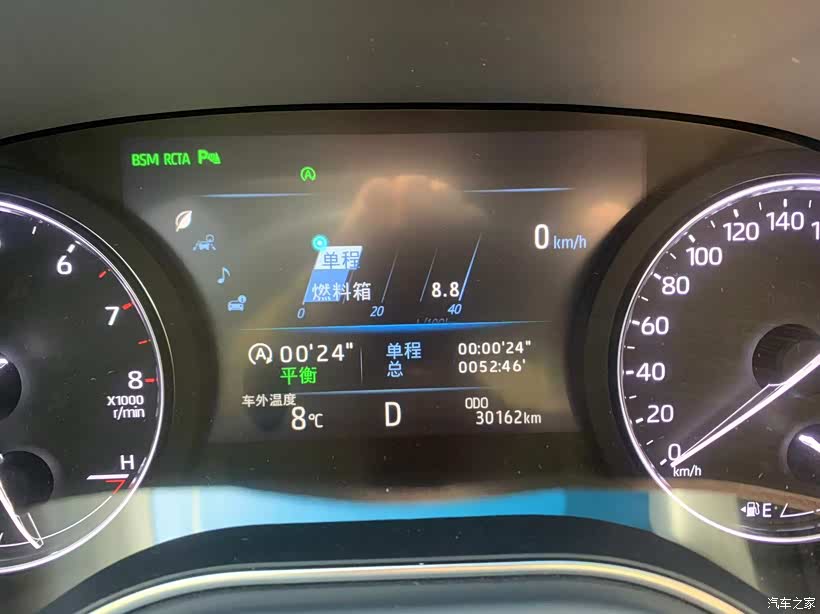 提车以来油耗一直记录着,和行车电脑显示的一致,平均车速应该是24公里/小时,百公里油耗8升,乙醇汽油