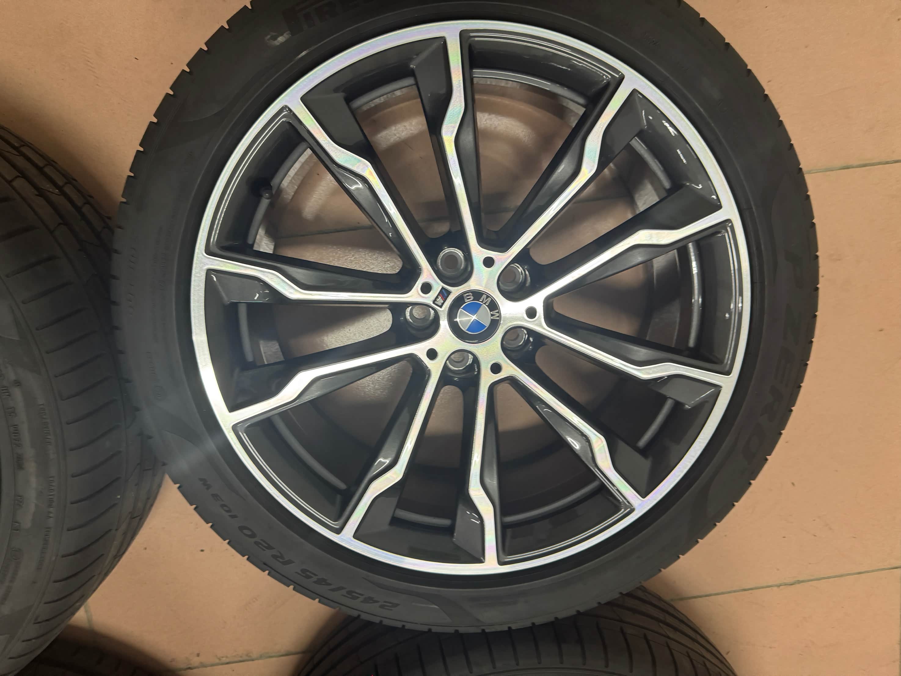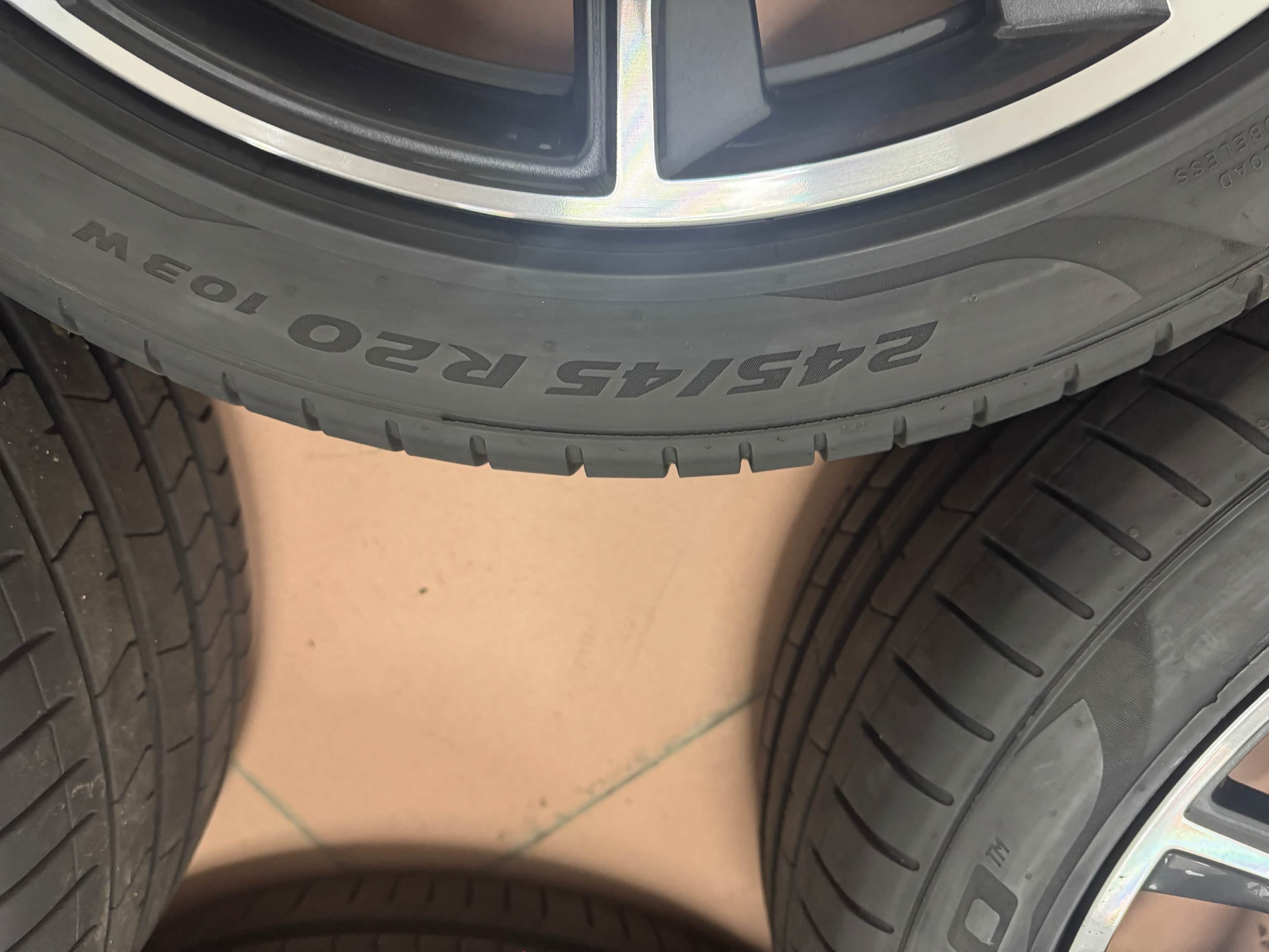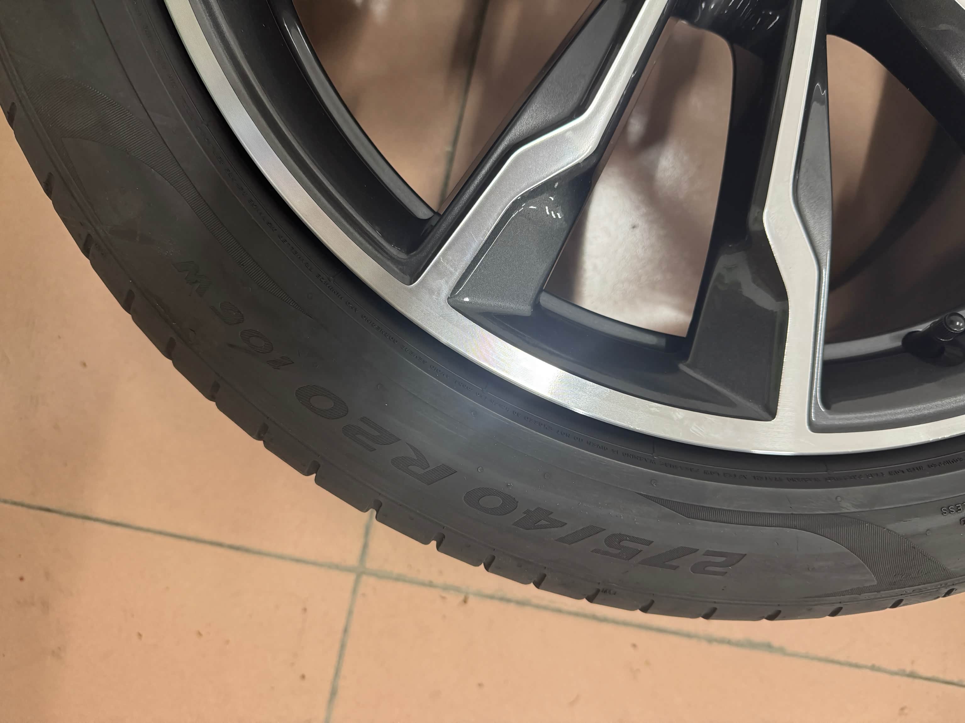 宝马X3原厂20寸轮毂一套,附带轮胎,几乎全新。适配X3/X4,轮毂数据:前20*8.5J,后20*9.5J,孔距5x112。轮胎规格:前245/45R20,后275/40R20,倍耐力轮胎。轮毂无磕碰划痕,轮胎无修补无鼓包。