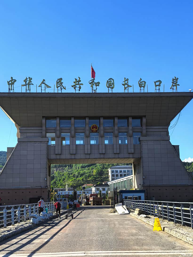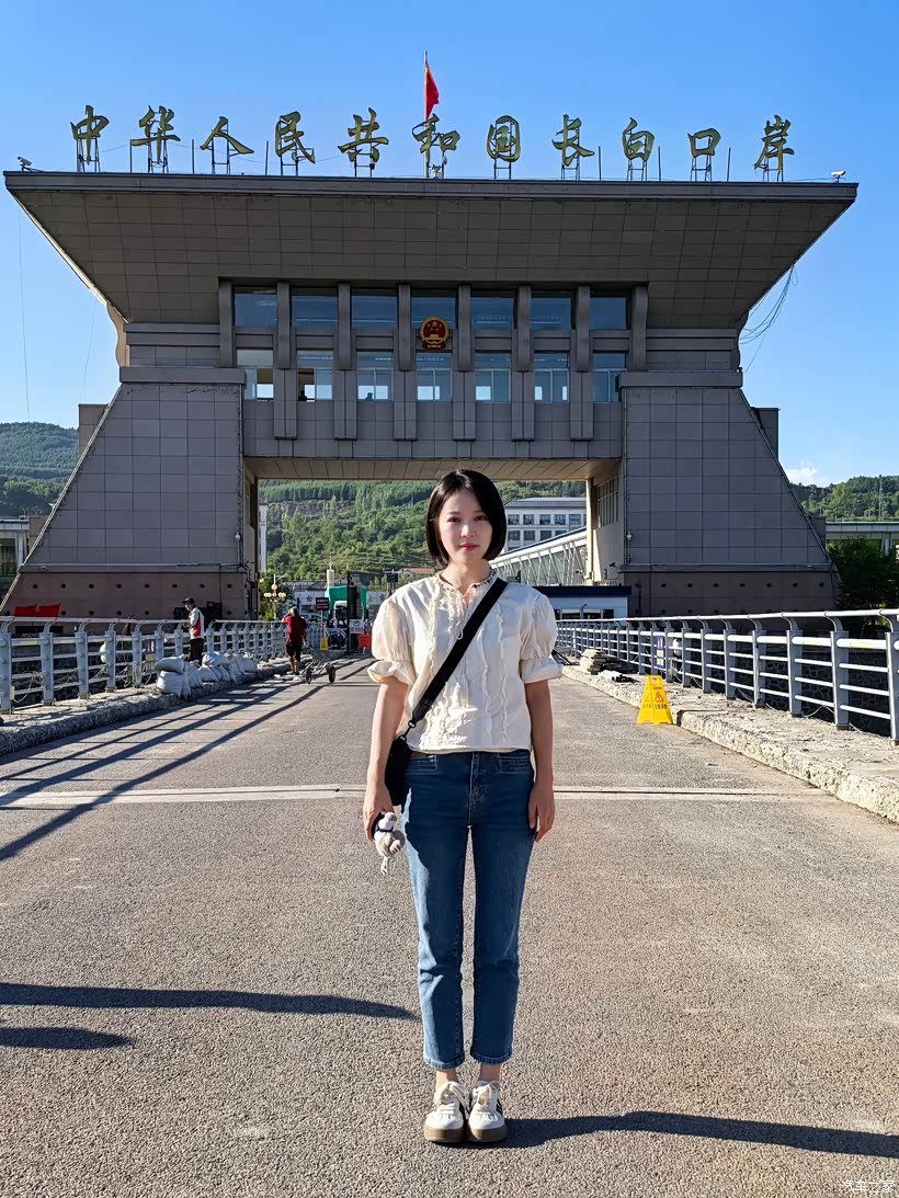 下午3点左右,终于抵达长白朝鲜族自治县。这座边境小城安静又整洁,街道两旁的建筑充满了朝鲜族特色。放下行李后,第一站便直奔长白口岸。站在国门前,看着飘扬的五星红旗,心中涌起莫名的自豪感,远处还能隐约看到对岸朝鲜的风光,这种跨边境的视觉体验十分奇妙。