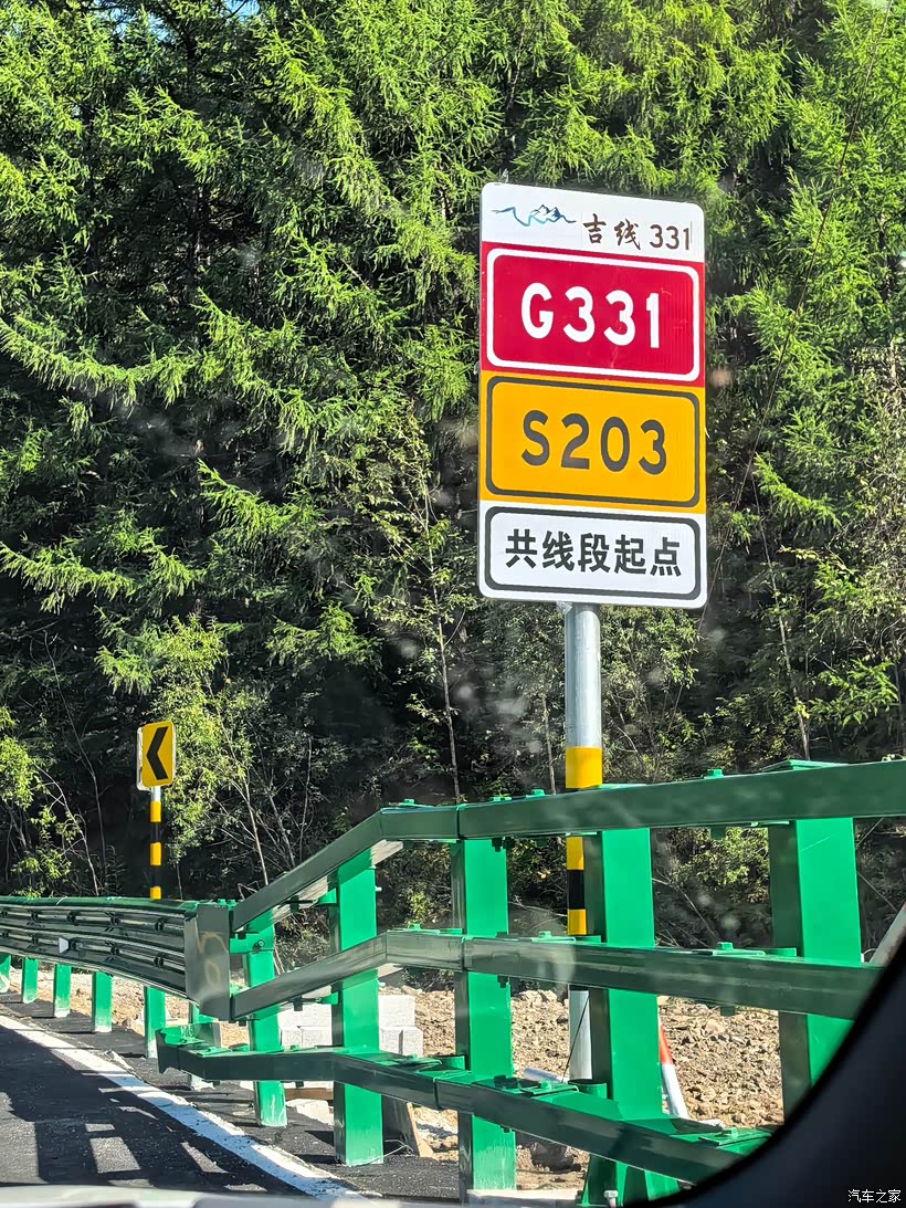 上午10点半,按照计划在通化县高速口驶出,找了家肯德基快速解决午餐。短暂休整后再次出发,接下来的路程要途经被誉为“边境最美公路”的G331 国道。刚驶上G331,眼前的景色便瞬间切换 —— 道路两侧是连绵起伏的青山,山坡上覆盖着层层叠叠的树林,10月初的树木已悄悄染上浅黄,与深绿交织出独特的秋日画卷。