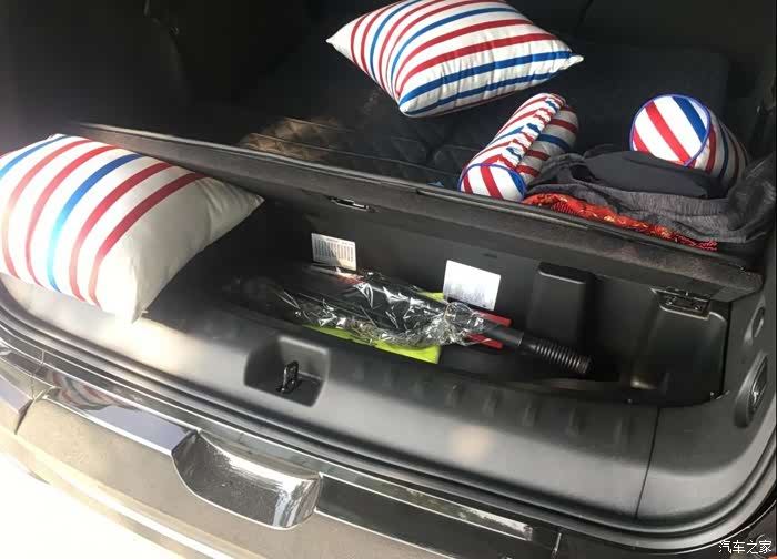 擎版的后备箱常规容积222L,放倒后的表现扩展到1970L,完全满足像我这种二胎家庭,人多东西多的困扰。在三排座椅不放倒的情况下,放上2、3个行李箱没问题。下面还有个小储物格,把常用的工具,矿泉水放到里面正合适。