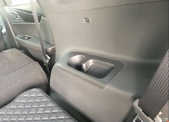 二排的中央操作区,可以实现二、三排座椅的独立空调调节、二排座椅加热通风开启,也贴心的设计了充电口和电源接口。操作区下方还有一个超大抽屉式储物格,可放几个本子进去,我家孩子的小汽车玩具就放在这里。二排座椅中央扶手拉下来是2个杯托。二三排的车门上同时也设计有放水杯跟放手机的地方,还同时配备独立的空调出风口、独立的扶手、采光口以及头灯。在旅途中随处可放的空间感受,以及头灯的阅读感受即增加了人员的乘坐乐趣,又妨碍不到驾驶员的驾驶操作。