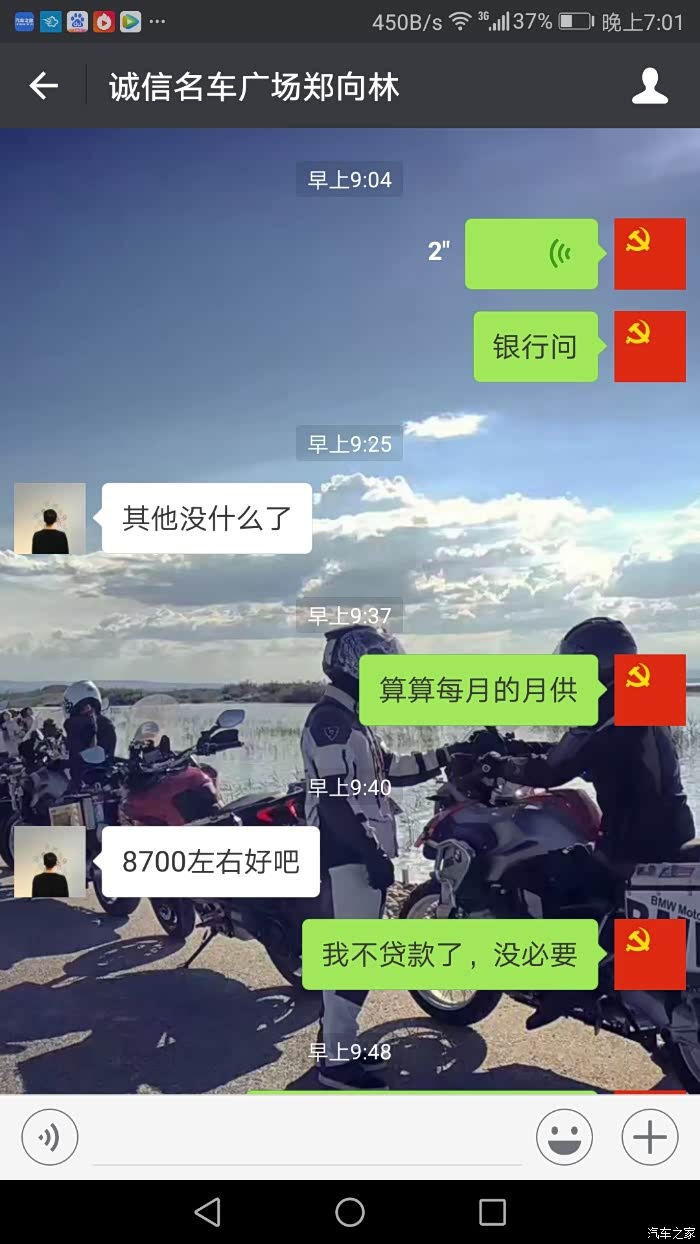 昨天发个帖子,说二手车38万,一个哥们回复了“呵呵”。昨天刷卡10万定金,查了一下征信,我就回家了。