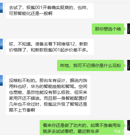 朋友前段时间和我说想买个电车,我还以为是开玩笑,结果这两天就跑去试了极氪001。看样子有点犹豫,准备继续去看阿维塔12,这小子做过功课啊,专挑着好车看。