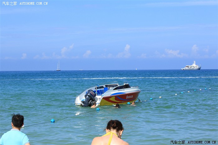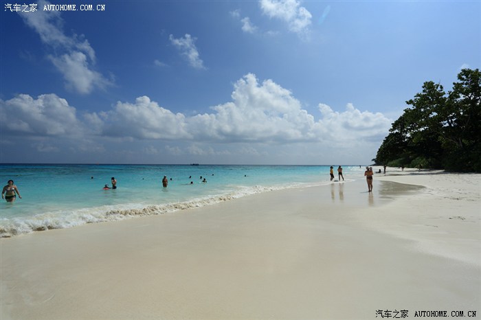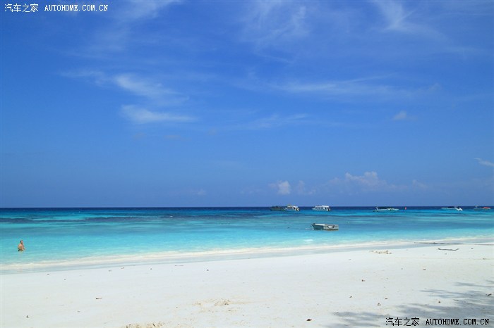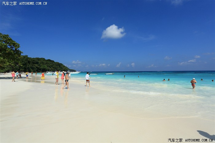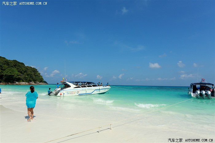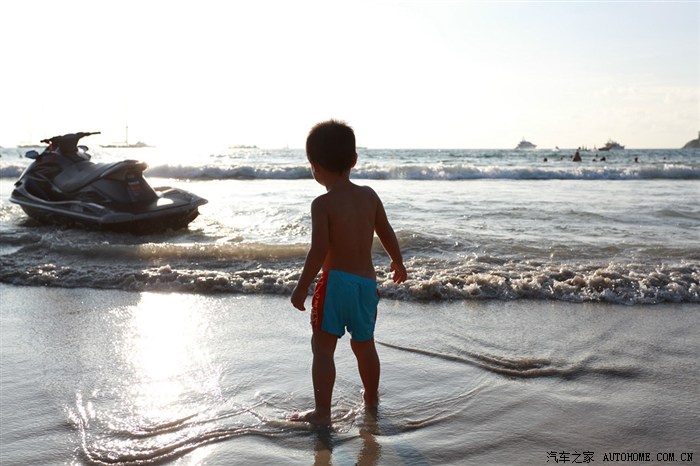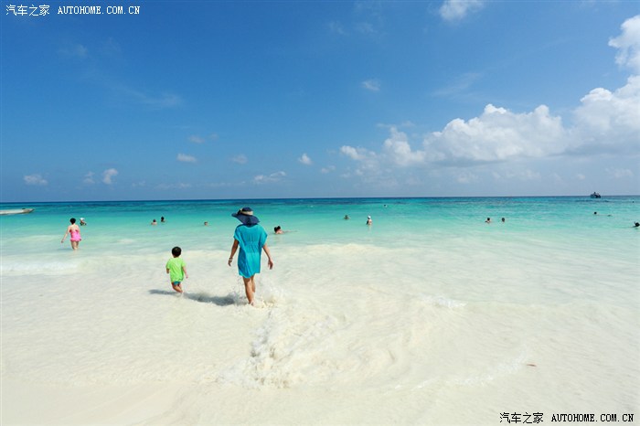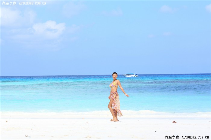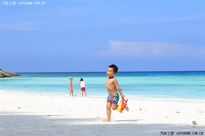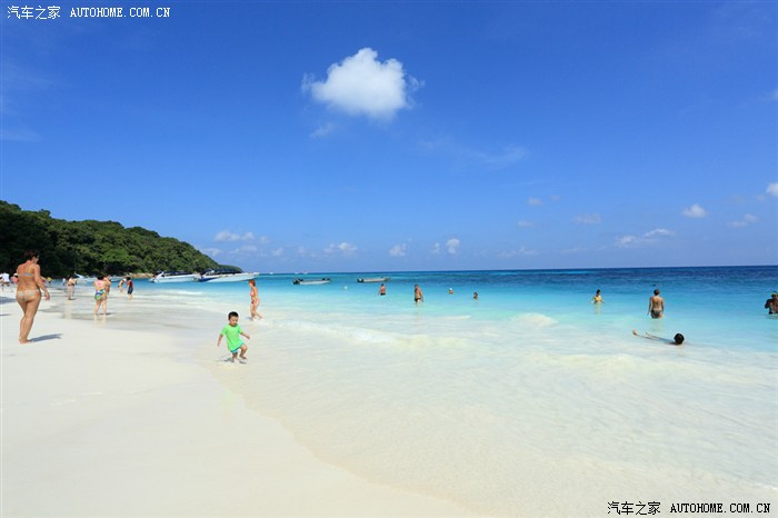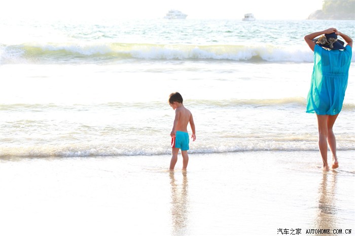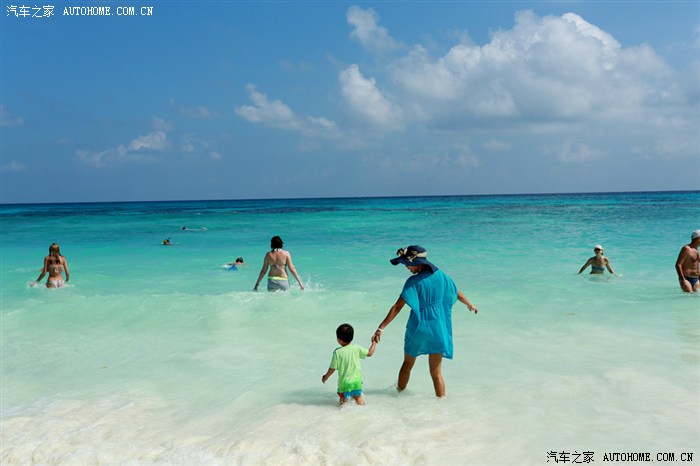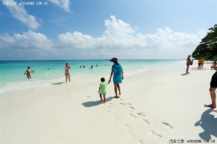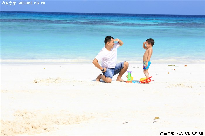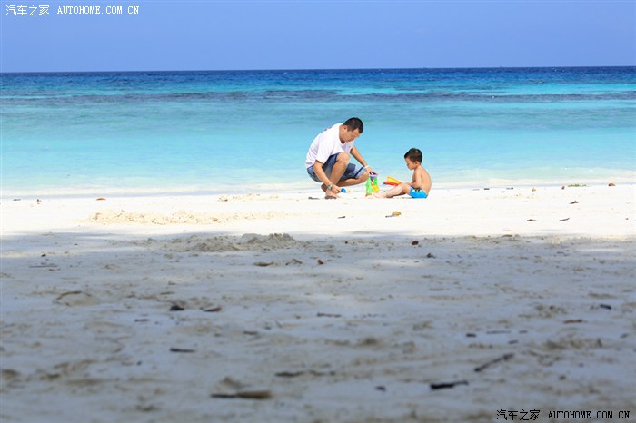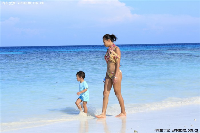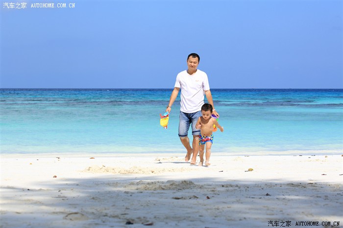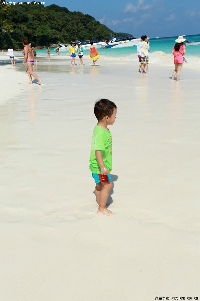 我们走出海滩,哇!传说中面粉般的沙子,白白的随着浪花冲啊。我说这不是面粉,更像儿子喝的奶粉,看着沙子被浪冲着的样子,很像老婆冲开奶粉的感觉。孩子正玩得入迷,就不远处又听见导游喊:“白色......白色“,是集合了,我和孩子在长长的沙滩上奔跑上船了。