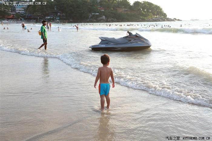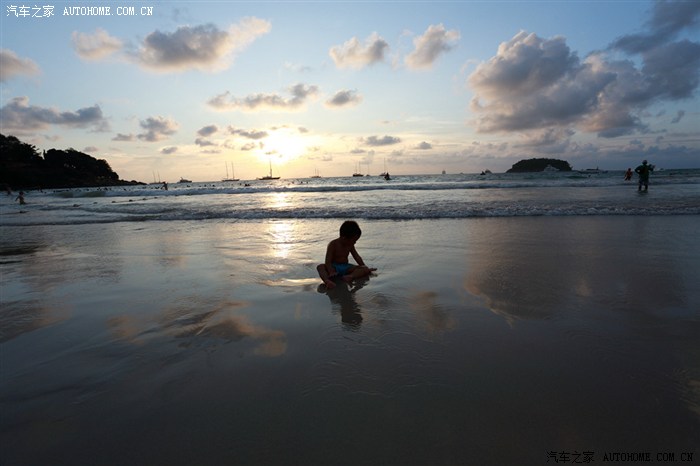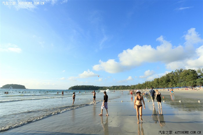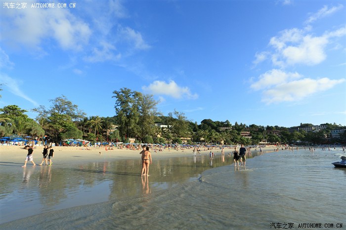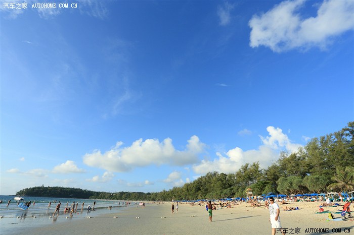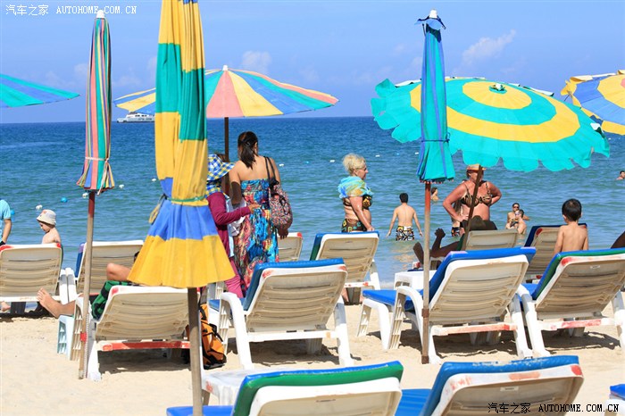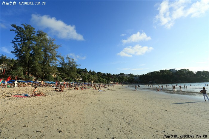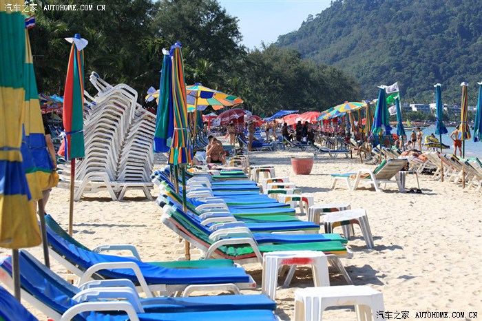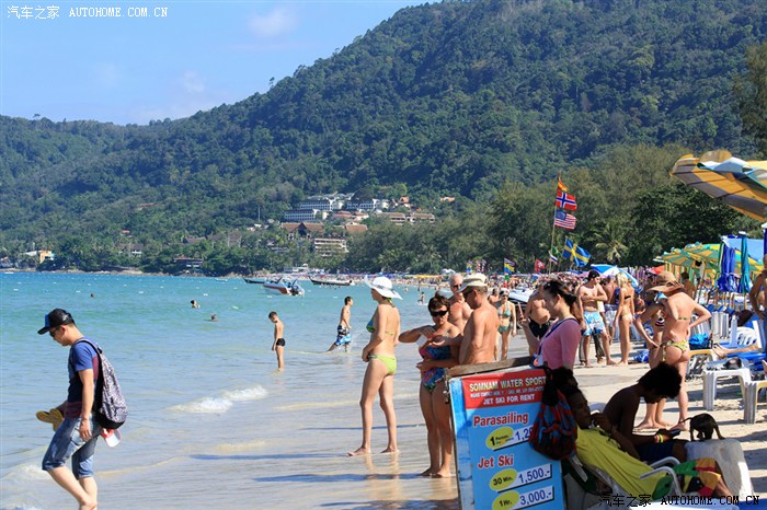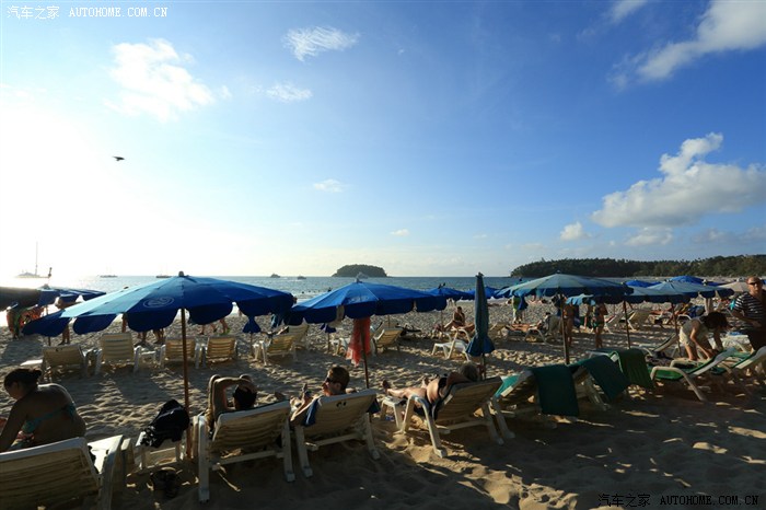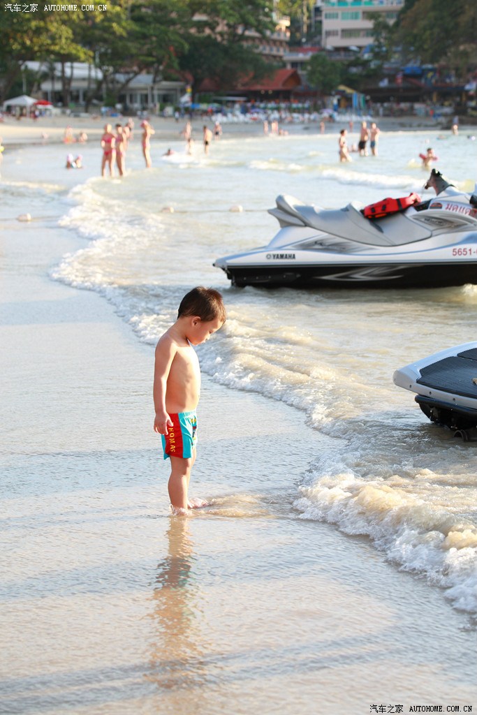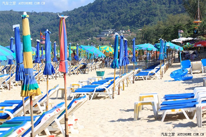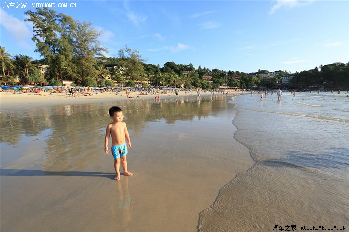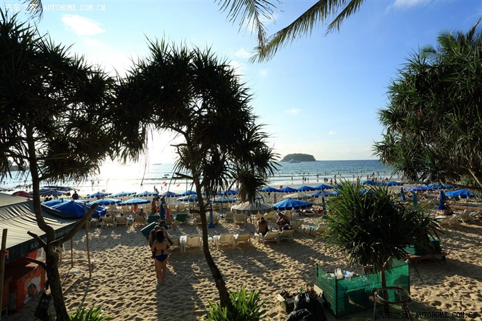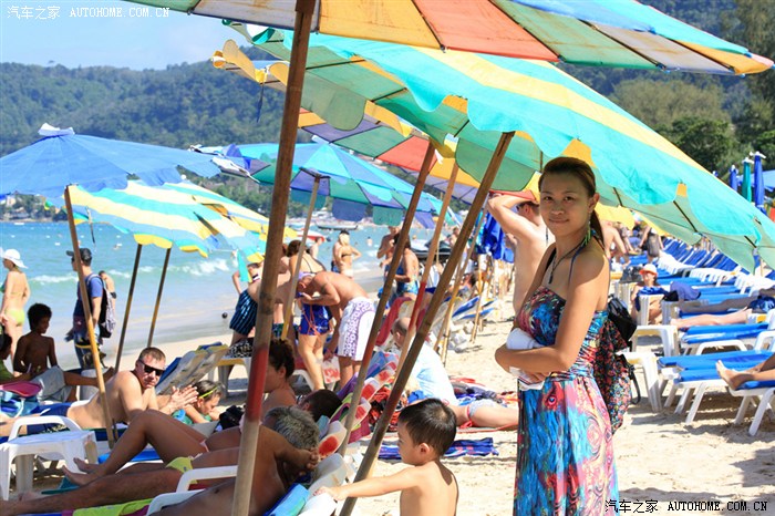 沿着酒吧街走去,约10分钟就到海滩。芭东的海滩到处都是太阳伞,密密麻麻的。经常有人经过身边问你租伞和沙滩椅,海滩边的果汁店开始营业了,有做泰式按摩的,没有问价。实在太多人了,我站了一会就想走,就是我那儿子居然脱掉裤子走出去玩水,滴汗啊!还是尽快到卡塔吧!!