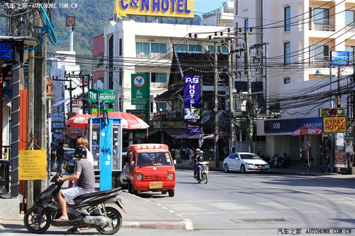 到达了芭东ABC GROUP酒店(小旅馆),很传统的装修,到处可见大象的装饰,木质地板的接待处,你要脱鞋入内的,很干净的环境,几乎没有感觉脚底或摸到的地方有脏的感觉。有两个懂中文的帅哥,真的很帅哦!我们住入2楼,一栋才4层楼,每层4间房。房间内有小阳台,但是我们怕有蚊子没开,最后发现担心是多余的,泰国很干净,很少蚊子。酒店很节约,只给你一张房卡,供电是它,开门也是它。没有煮开水的壶,你要是想做什么方便面之类的,可以到一楼的小厨房,什么餐具都有,好像可以煮饭的样子。