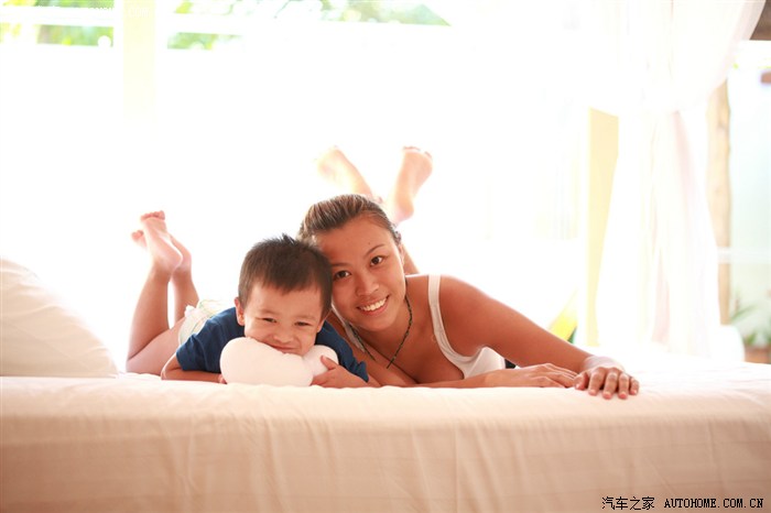虽然好玩,但我还是坚持让孩子睡午觉,这么大的床就他一个睡,舒服得不想起来。最后还是狠狠拉开大窗帘,阳光叫醒了他。下午的阳光透进房间,床上,那逆光的效果,绝对迷死摄影师啊!
