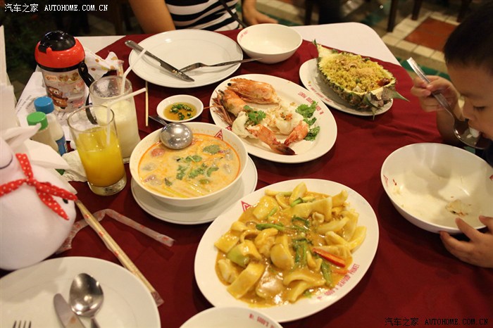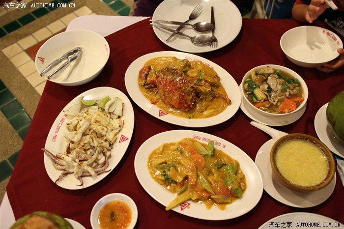 不多说,傍晚了又是找吃的时间。来顿海鲜怎么样?据闻yoyo家很好,我们找到了,但是觉得很一般的小店,看看价格也不便宜。果断换一家门面大些的XXX。在芭东,基本可以用广东话或普通话沟通的。在这家饭店我们遇上了一个会说广东话的阿姨,她说她的爷爷是广州人。就是这么巧,大家自然玩开了说开了。晚餐上图