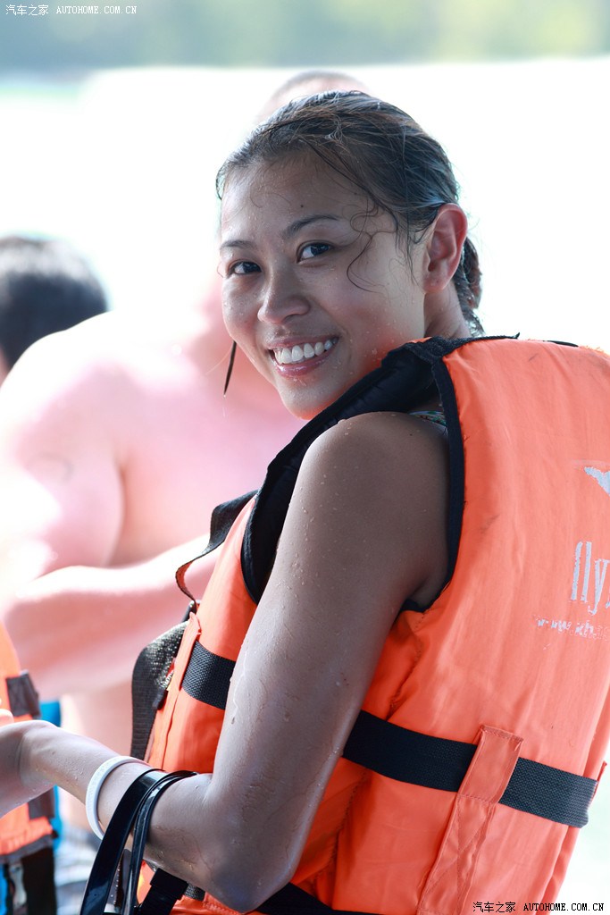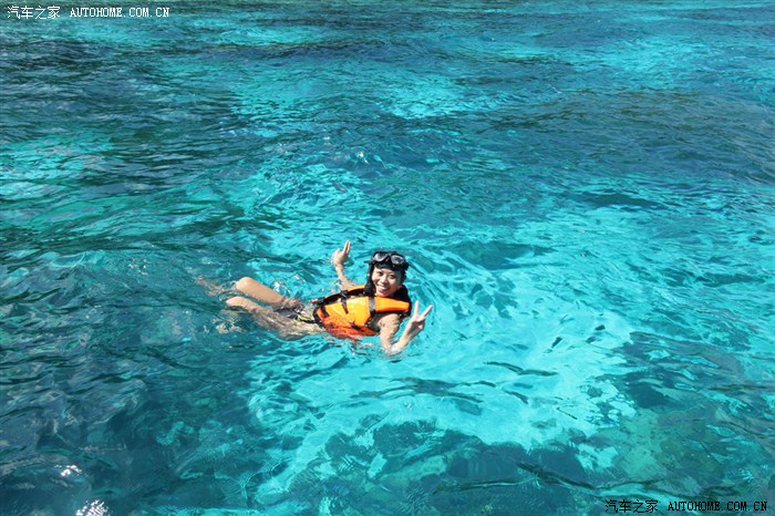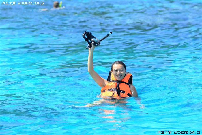 很快到了潜水点,老婆很快就穿好救生衣,带上面镜就下水了。