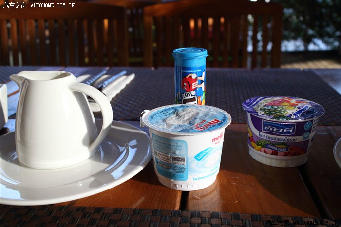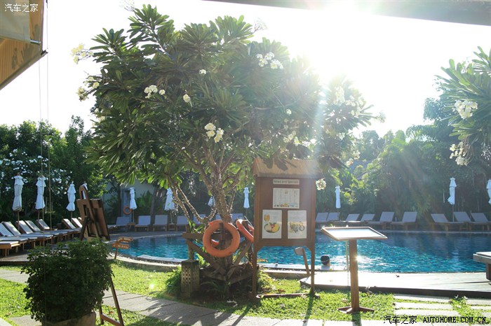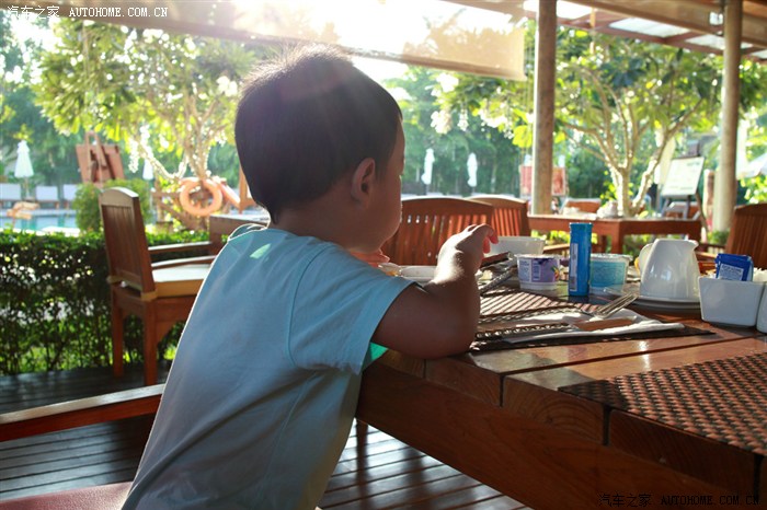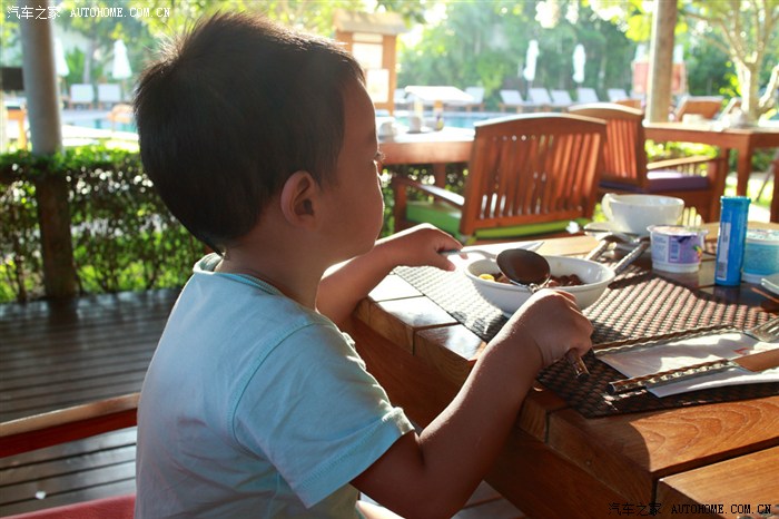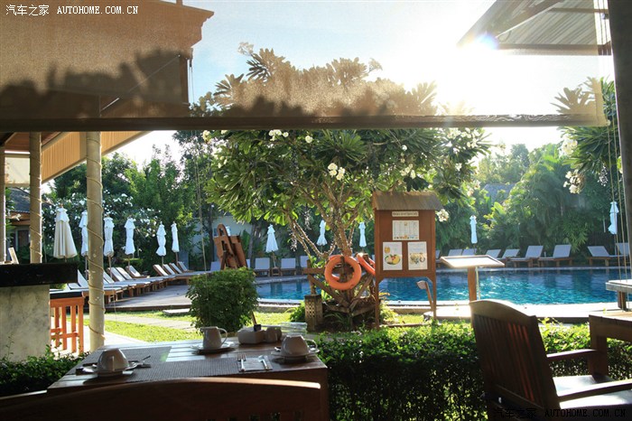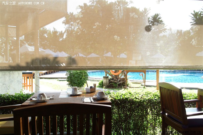 卡塔早上的阳光依然热情,餐厅已经摆好食物等我们了,我们又是丰盛地吃啊。在泰国很特别,我们吃的比平时的份量多很多,但绝对不会感觉很饱很辛苦,没有肚子涨涨的感觉。可能是水果比较多,各方面都很均衡的缘故。阳光照进餐厅,旁边就是大泳池,无论是天、泳池水、树的颜色,都给人感觉很舒服。
