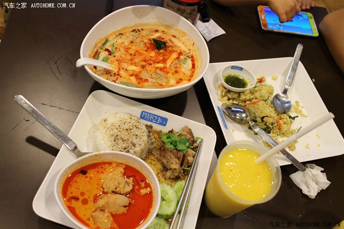 我们去的时候是差不多到圣诞节了,到处都是圣诞节气氛的装饰。但是商场的楼上有类似食街的地方,买一张卡500b,吃完可以退款的。感觉味道和食材都很正宗也很便宜,我们买了两个饭,两杯饮料,一个冬阴功汤,才202b(大概40rmb,哈哈)