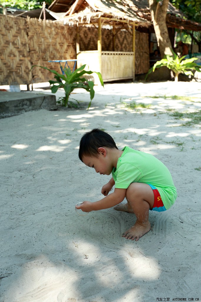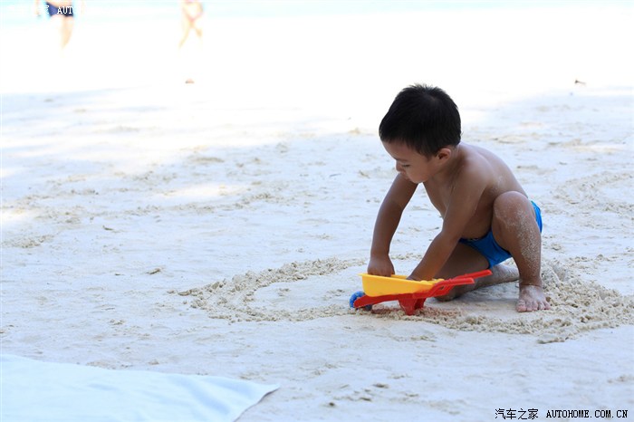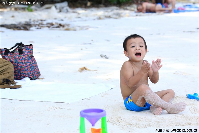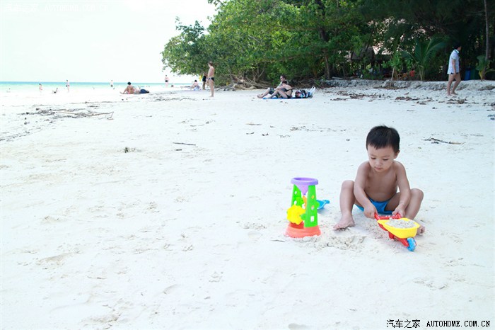 饭后还有时间让我们再沙滩上休息,他们提供毛巾擦干身子,也可以铺在沙滩上当床,我小睡一会。看着孩子在玩沙子的玩具,那也是旅行团提供的。偶尔可以到水里游,还能在沙滩拍美照,老婆为了能穿好比基尼,可是下了苦功的哦!