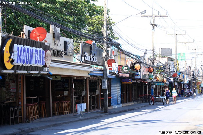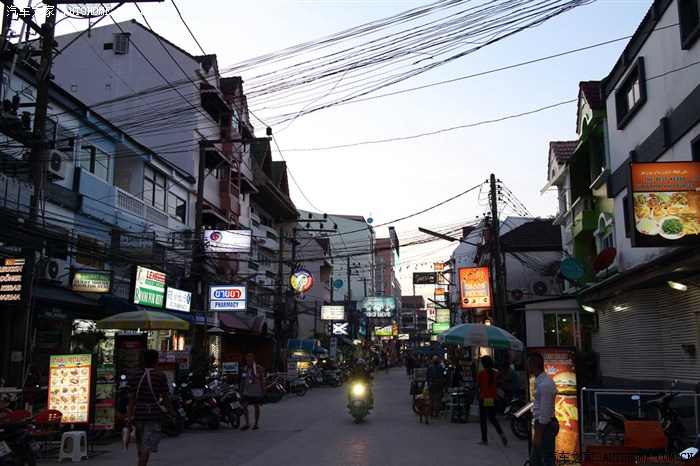 回程上船后,旅行社摆好鞋子在码头,穿上就去交回面镜和手带,他会给你车号,让车子送你回酒店。回到酒店已经八点多了,这个行程在颠簸车船程中结束。回到酒店就去找吃的,芭东很多西餐厅和酒吧,外国人在这里都很休闲地坐着聊天,我们也累得没兴趣享受这生活了,还是去昨天那家找那个会广东话的阿姨吧!上图