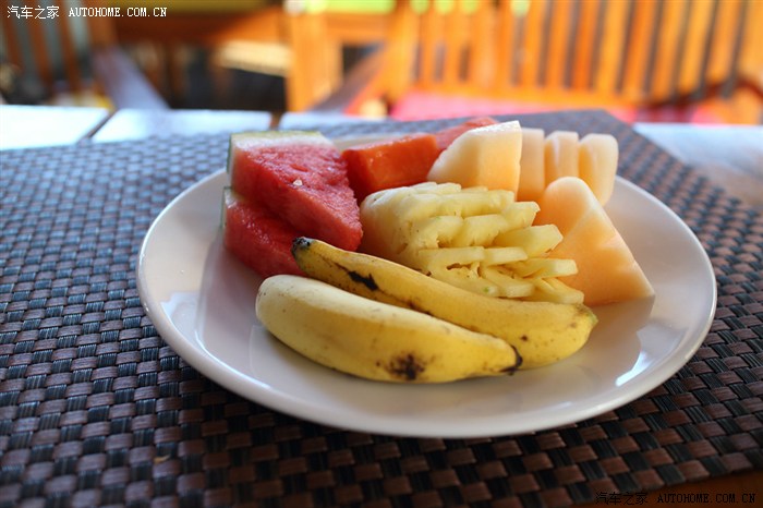 潜水后,一阵饥饿来袭。又是自助餐,耶耶耶!我强调,果汁非常好喝,食物非常好吃,水果非常地甜。上图
