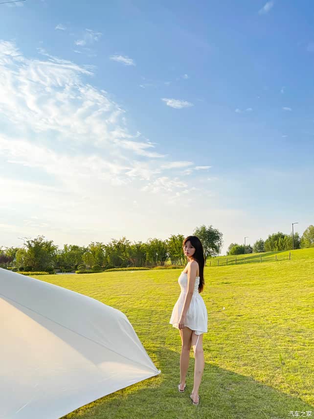 绿地、白车、蓝天,我拍的整张图片是不是特别有意境!看着这样的美景,心境也变得十分开阔。