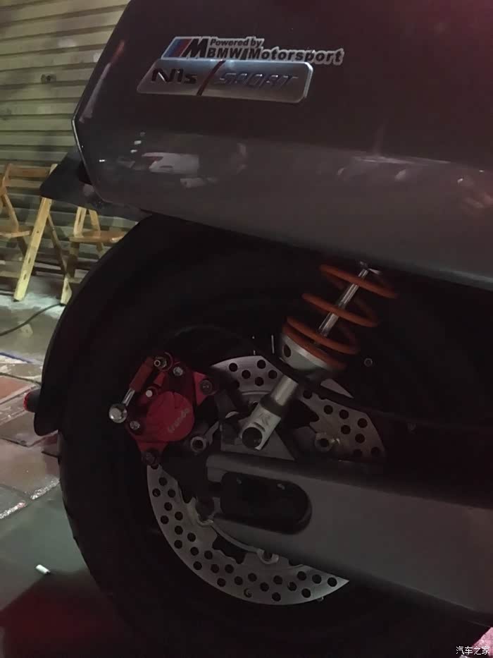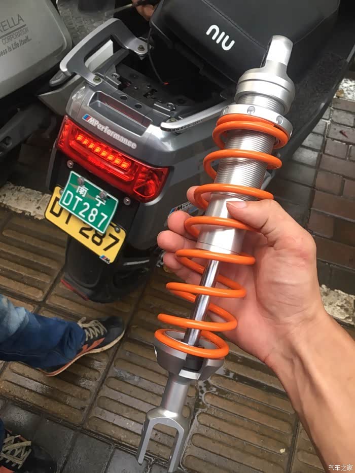 去改装店问换什么减震好,老板就给我推荐了林海,这款软是软,就是好丑,装小牛上面不好看,既要美观又好用还真难,后面老板推荐了双R 就是有点小贵…800块,从台湾拿货,看了图片还真被吸引了,一个字,帅!说着订货要四五天就行,然后就定了,…结果等了半个多月…真不容易啊,装上之后老板又给我推荐刹车卡钳,改装真的是一种毒…改完减震又觉得卡钳太丑,改完卡钳卡钳又觉得轮胎抓地力不够,唉…越陷越深啊~