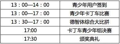 1、共200名青少年朋友(要求身高1米4以上)分组进行卡丁车比赛,6人一组,比赛时长5分钟,按年龄组别A组,B组,C组总成绩进行排名,最后分别进入决赛。