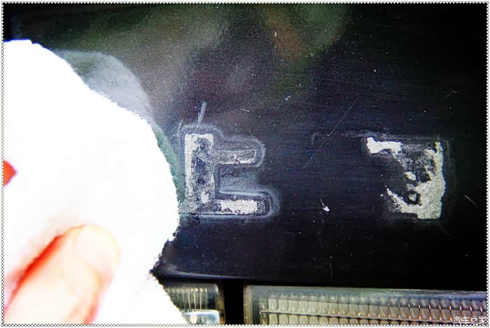 去胶工作告一段落,下面开始准备粘贴新车标。