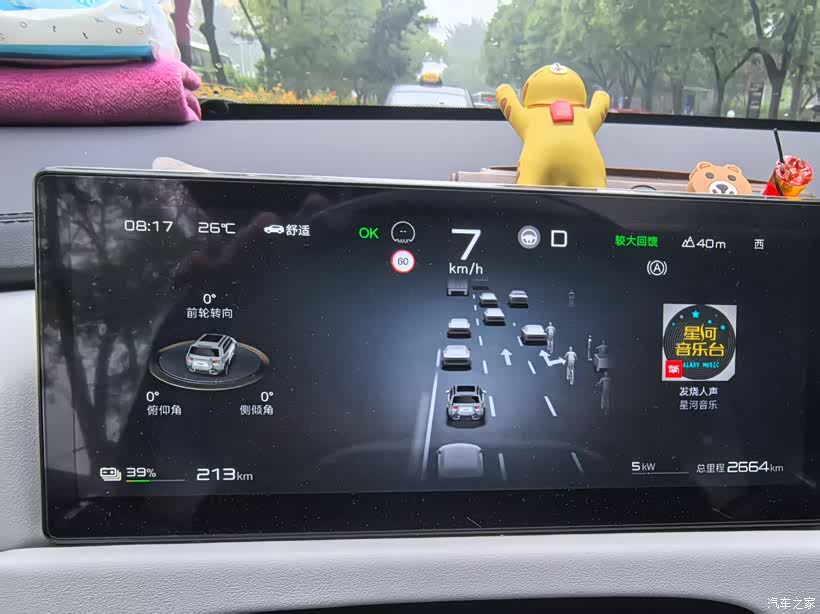 再说缺点:续航不适合节假日车多的时候跨省跑高速——标称501、一个月下来跑高速120迈的话大概能跑330KM左右、去一趟山东中间必须充电,市区不超过80迈的话应该能跑450KM、我的距离两周基本够,具体情况会在后续的体验中上数据、上图;在锁车后关掉所有用电功能只打开天眼的时候,每天晚上耗电2%——大约1.5度、比较高;虽然集成了deepseek、只是在非智驾语音对话的时候有所体现,跟智驾、语音、导航缺乏融合——如:导航有时在大路口不显示红绿灯倒计时、说“显示红绿灯倒计时”、答“目前不支持”、明显的答非所问,导航让从辅路进主环路、没进的情况下导航显示在主环路、说“我已经在辅路,请按照辅路导航”、答“你要选择哪条路”然后弹出路径界面,智驾时不够居中稍偏右、问“智驾居中偏右了、请居中”、答“不居中的可能原因。。。,请在设置中设置”;其他的小毛病,如:出现几次熄火后尾灯不灭、熄火后车头的电池发出很大声音、不清楚是在干啥,都需要重新启动后再熄火才可以,开启自动灯光、自动打开远光灯后一直亮、要手工关掉。