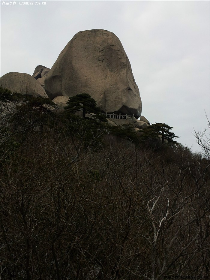 中间山顶上又是什么石头?像个“壶盖”、“帽子”似的,难道还是“飞来石”!