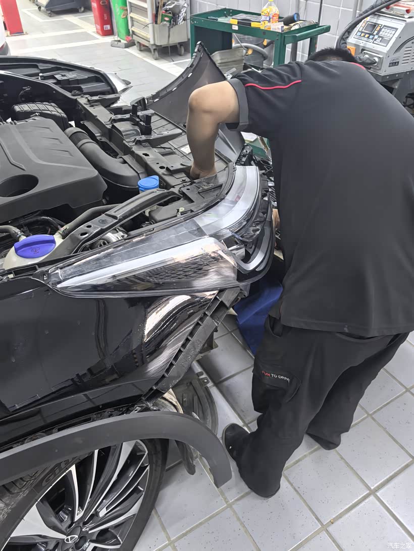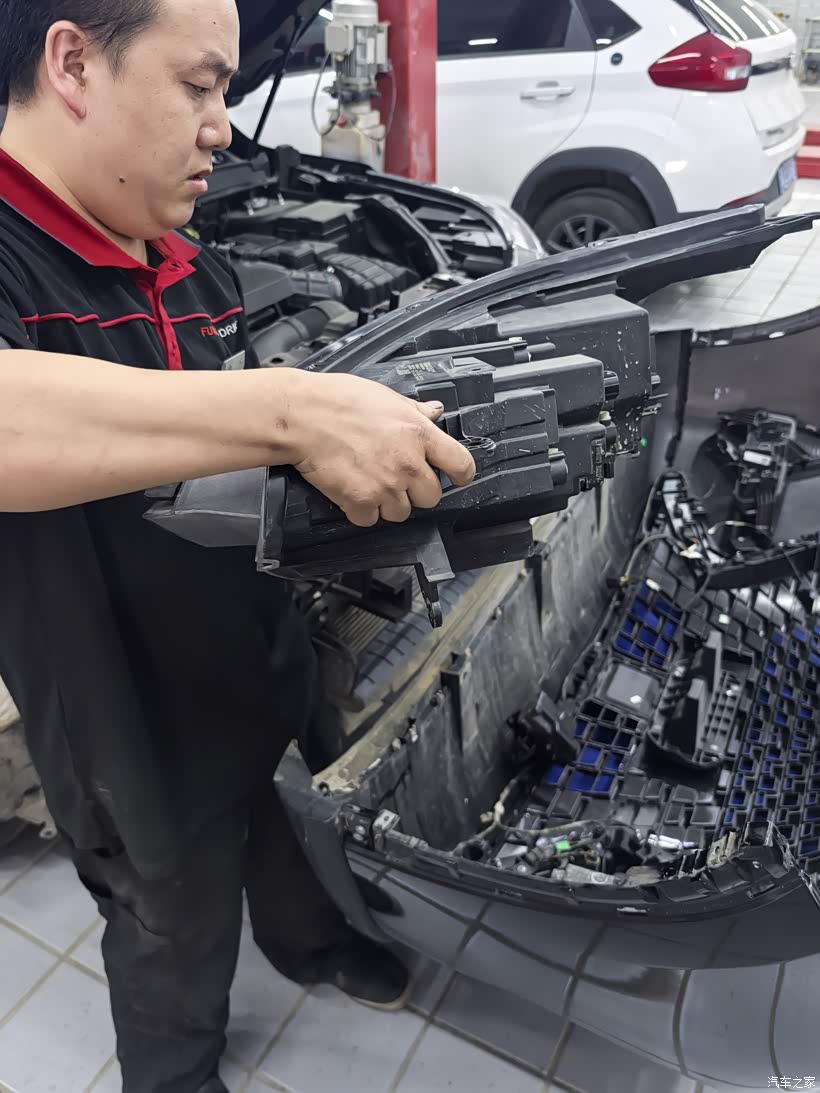 师傅先是仔细检查了几分钟,确认车身无损伤后,便熟练着手安装大灯总成。他技术精湛,准安装到位。仅凭一人操作,手脚麻利地很快就将新总成精准的安装到位。