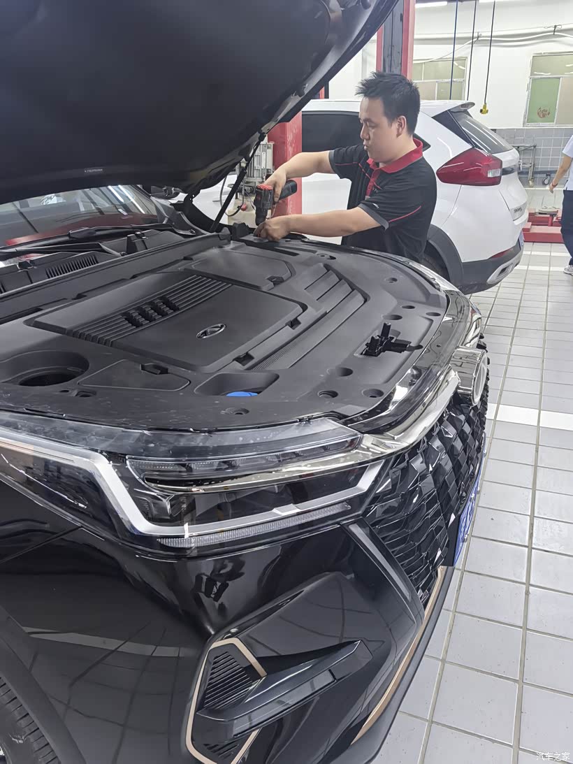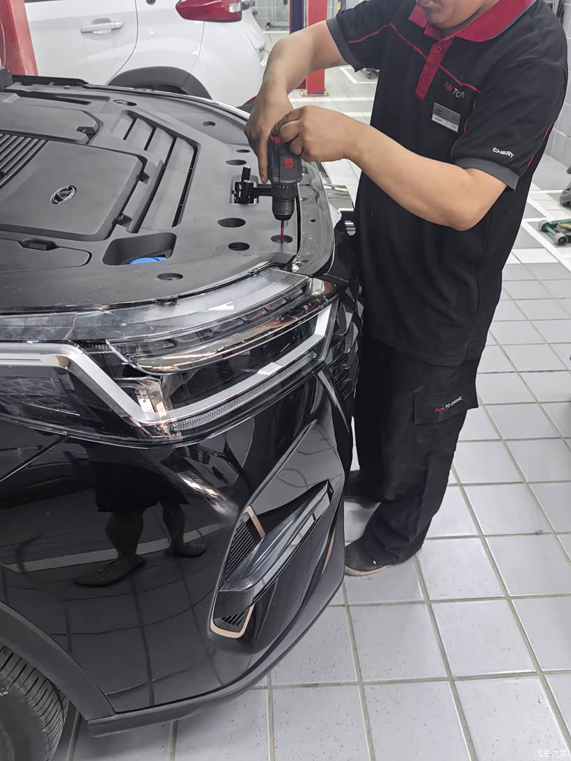 到店后,师傅开始拆卸机舱盖,准备将中网先拆下来。