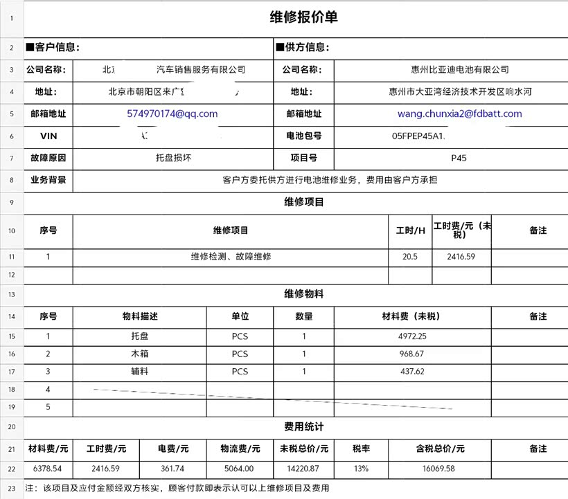 故障描述:快充无法充电。慢充正常。诊断电池包内继电器粘连,需要更换配电箱总成,十年30万公里的质保只是电芯,电芯没事,结论是自费维修,另送修发现电池包外壳有深度凹陷,有裂缝(因为装了护板,一直没发现,电池厂反馈的),一并更换了电