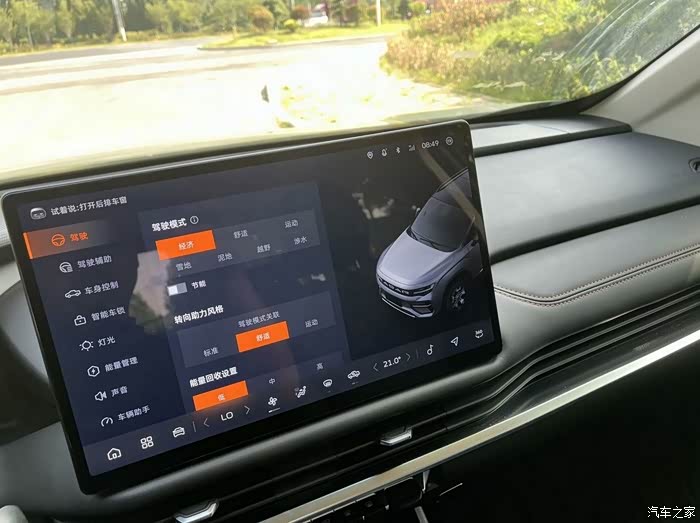 驾驶模式多这点也是加分项,常规的经济、标准、运动就不说了,我这台是四驱版的,还有越野和雪地模式。现在天气热了,我正好去了一趟南边山区游玩,体验了一下越野模式。那是真有点上头,动力更猛,通过性也好,碎石路、坑洼地形,原来我开的家用轿车得慢慢晃上去,但开地平线就像是直接碾过去,车身稳,车里人也稳,完全不像想象中“抖得脑袋疼”。