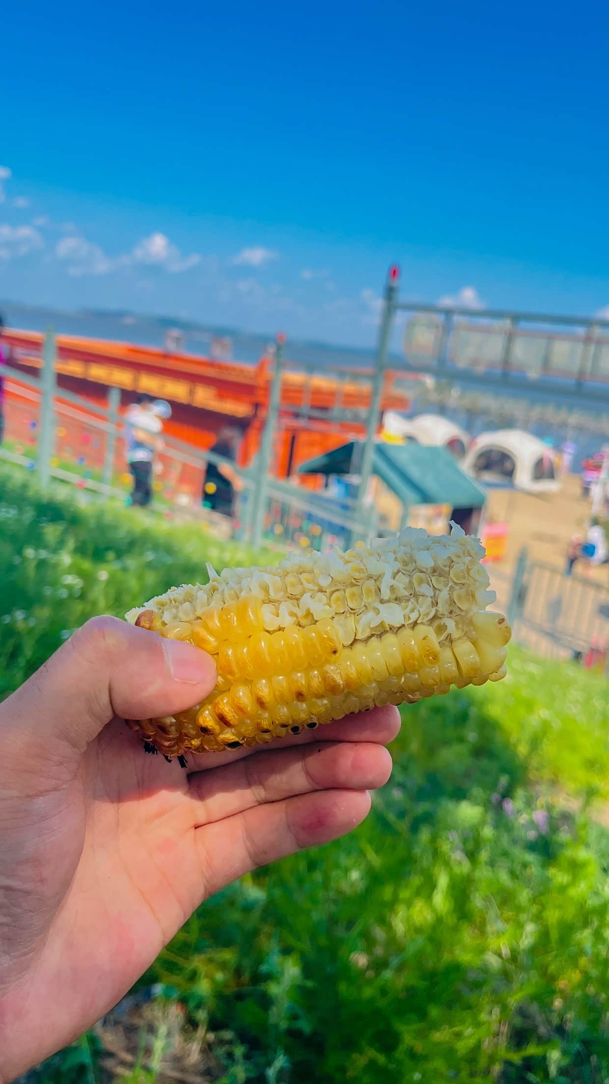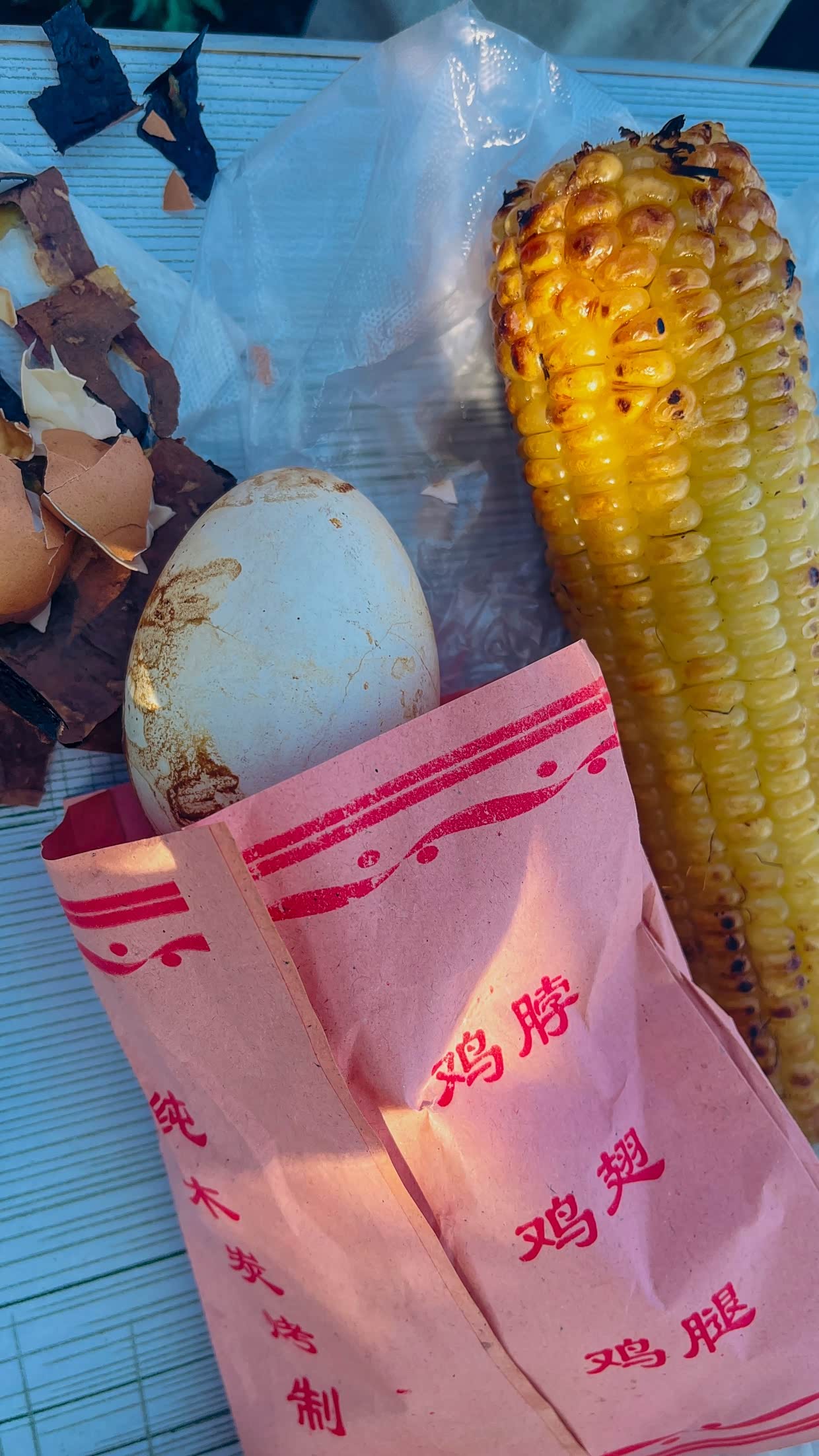 骑了一阵,肚子开始咕咕叫了。正好路过西飞渔村,我们就决定在这里补充能量。走进渔村,一股浓浓的乡土气息扑面而来。我们点了苞米、鹅蛋和烤地瓜,这些都是东北特色美食。苞米又甜又糯,鹅蛋咸香可口,烤地瓜更是香甜软糯,咬上一口,满满的幸福感!我们坐在渔村的小院里,一边吃着美食,一边聊着今天的所见所闻,感觉特别惬意。