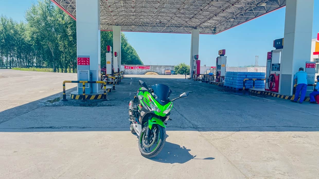 骑到巴彦加油站的时候,摩托车的油快见底了。正好也有点累了,我们就停下来补油,顺便在加油站的小超市里买了点水和零食。加油站的工作人员特别热情,还和我们聊起了驿马山,说那里风景超美,让我们一定要登顶看看。听他这么一说,我们对驿马山的期待值更高了!