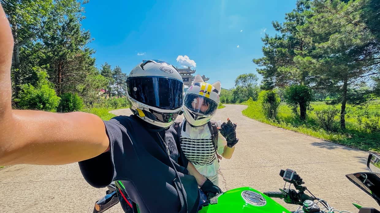 出发那天,天气好得不得了,阳光洒在身上,虽有点小热,但丝毫不影响我们激动的心情。我早早地检查好了摩托车,机油、轮胎、刹车,链条一个细节都没放过,还特意给女朋友准备了好看又安全的头盔。