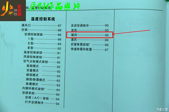 ▲该车的用户手册第86页温度控制系统,关于暖风开启二种方式的相关描述。