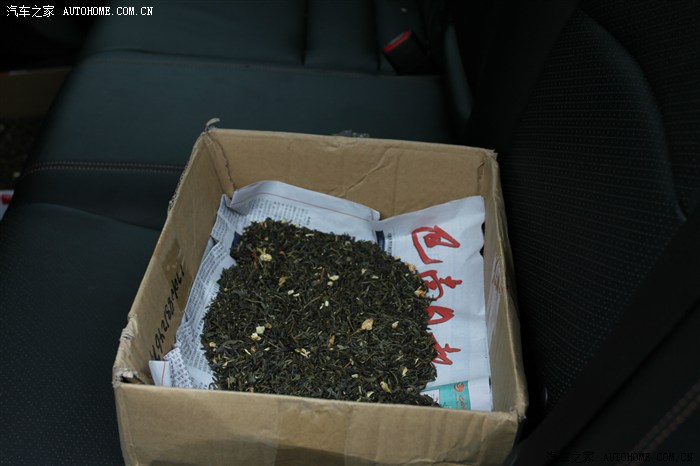 给个盒子的特写——是茶叶!吸收车内的异味,效果很好!!!