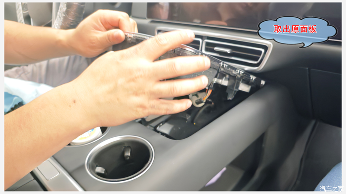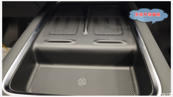 升级过程相对简单,翘板拆除原车面板,更换安装新的50W无线充电板;